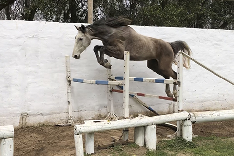 Raza Silla Argentino RP 5/34 Hembra Tordilla Nació el 15/01/2015 Es hija de Air Borne Z y Aramba Z por Akito Z. Air Borne Z, 1.50m, compitió en los CSI Sol de Mayo, Haras El Capricho y Wellington. Es hijo de Air Jordan Z, un padrillo deportivo con grandes logros incluyendo el Subcampeonato de la Final de la Copa del Mundo de Las Vegas 2009, produjo a Air Chin Z, Jordan II, Ace Z y en Argentina es padre de Antartica Z 1.50m, Air Ship Z, JJ Panamericanos Lima 2019, etc. Air Borne Z es hermano de Careko Z, 1.40m, finalista en el Campeonato del Mundo para los 6 años en Lanaken 2015 y 3ro en la 2da Calificativa, 4to en CSI Villach Treffen, 5to en CSI Samorin. La madre, Aramba Z es una hija de Akito Z, un padrillo de linaje excepcional. Es hermano de Opaline Z,1.60m, 1ra CSI El Capricho, 2da CSI World Cup El capricho, 3ra en el Gr. Pr. de Johnstown, con clasificaciones en los CSI de Tryon, El Capricho, Sol de Mayo, etc, de Sedky, 1.60m, del Padrillo Aprobado Fortuin Z, de Blue Thunder, 1.20m., etc.